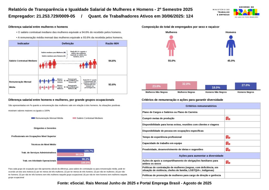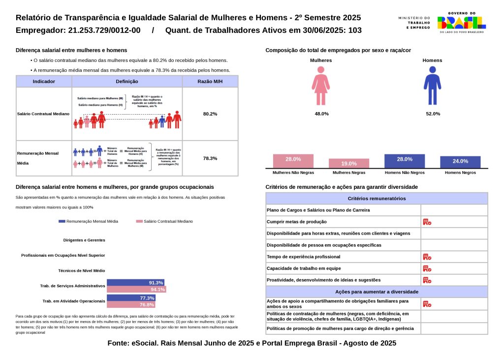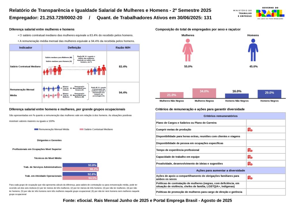 Relatório de Transparência e Igualdade Salarial de Mulheres e Homens - 2º Semestre 2025 CNPJ: 21253729000140
